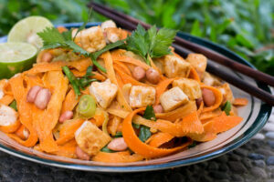 Gemüse Pasta mit Erdnussdressing – vegan & glutenfrei (2 Portionen)