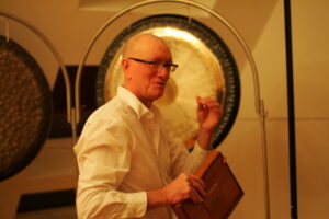 Verheiratet, 50+, Engländer, sechs Kinder – ich bin leidenschaftlicher Musiker für Gongs, Trommel, Percussion, (Oberton)gesang und Hang.