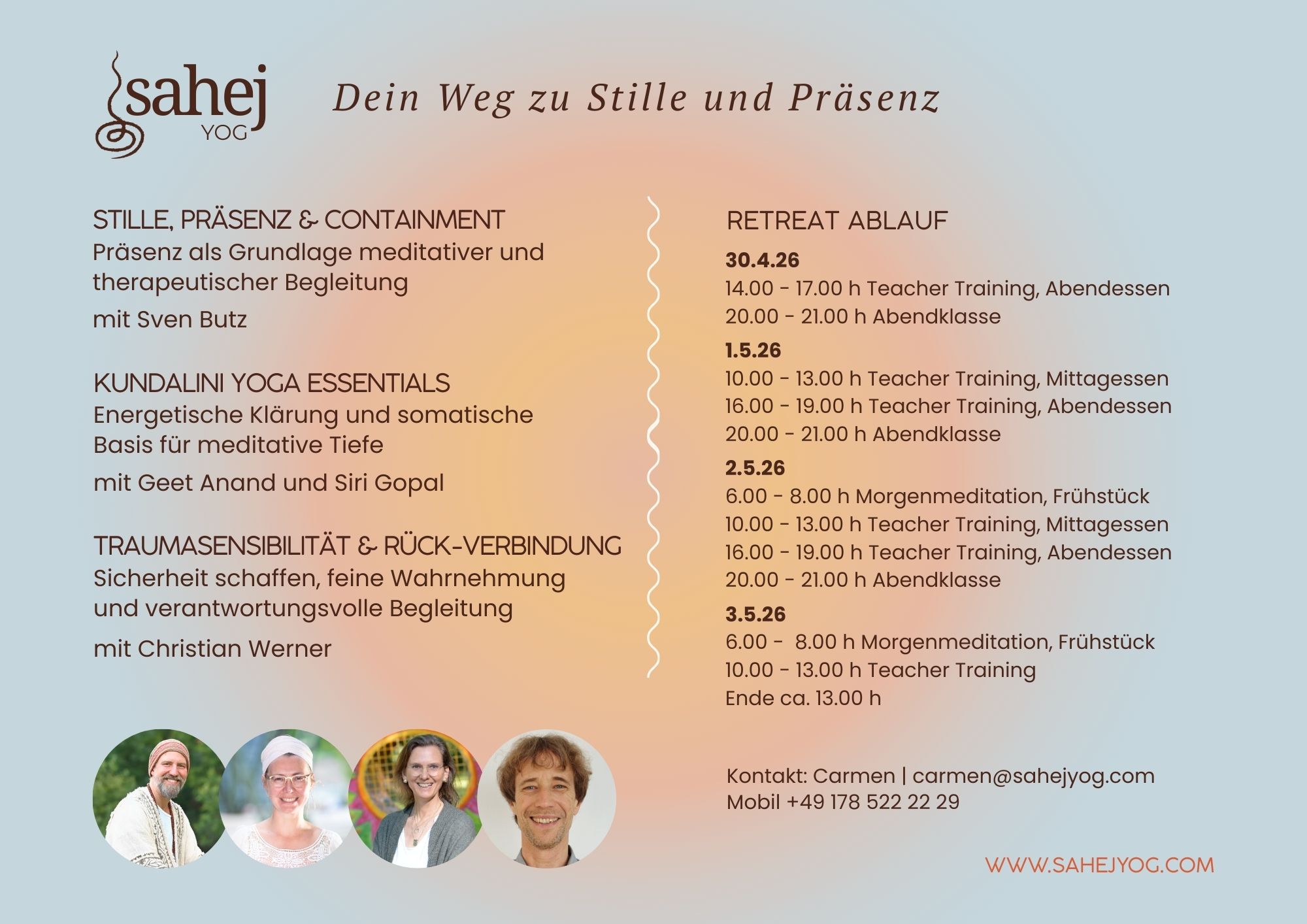 Bei Fragen: Carmen Smida // // carmen@sahejyog.com